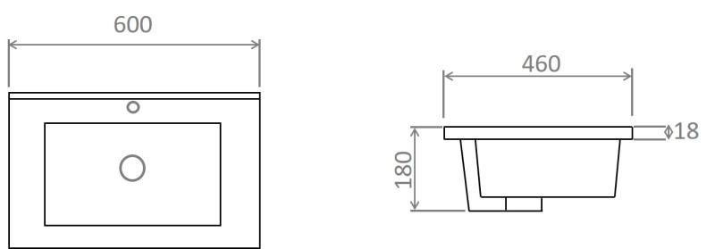 • Elegáns, modern, beépíthető kerámia mosdótál