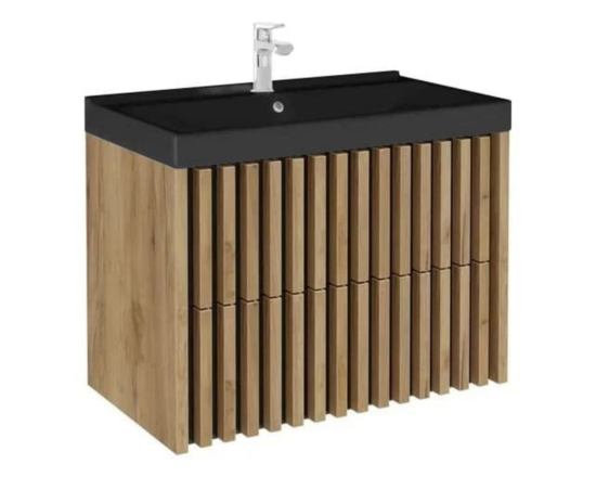 Bemutatjuk új mosdószekrényünket SAT Delano mosdókagylóval, fekete színben. Ez a szekrény nemcsak praktikus és funkcionális eleme fürdőszobájának, hanem a kortárs belsőépítészet slágerét - a függőleges léceket - is behozza a belső térbe.