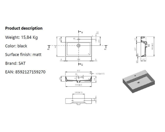 SIKO SAT INFINITIO MOSDÓ 60,5X46,5 CM MATT FEKETE SATINF6046BKM